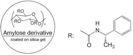 AMS为多糖衍生物正相涂敷型手性色谱柱,硅胶表面涂敷有直链淀粉-三(S)-α-甲基苯基氨基甲酸酯)。